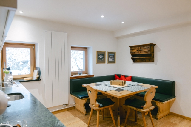 „il pichen gigant“ Nr. 1087, in dieser Wohnung ist eine der Stuben aus dem 16. Jahrhundert. Die Wohnung ist ca. 120m² gross, hat einen eigenen Balkon zur Südseite. Sie verfügt über ein Doppelzimmer mit Dusche/WC, ein grosses Doppelzimmer, Bad/WC, grosse Wohnküche und grossen Aufenthaltsraum. In der „stüva veglia“ kann man die Seele baumeln lassen – gemütliche Sofas zum Fernsehen, Lesen oder einfach Sein.